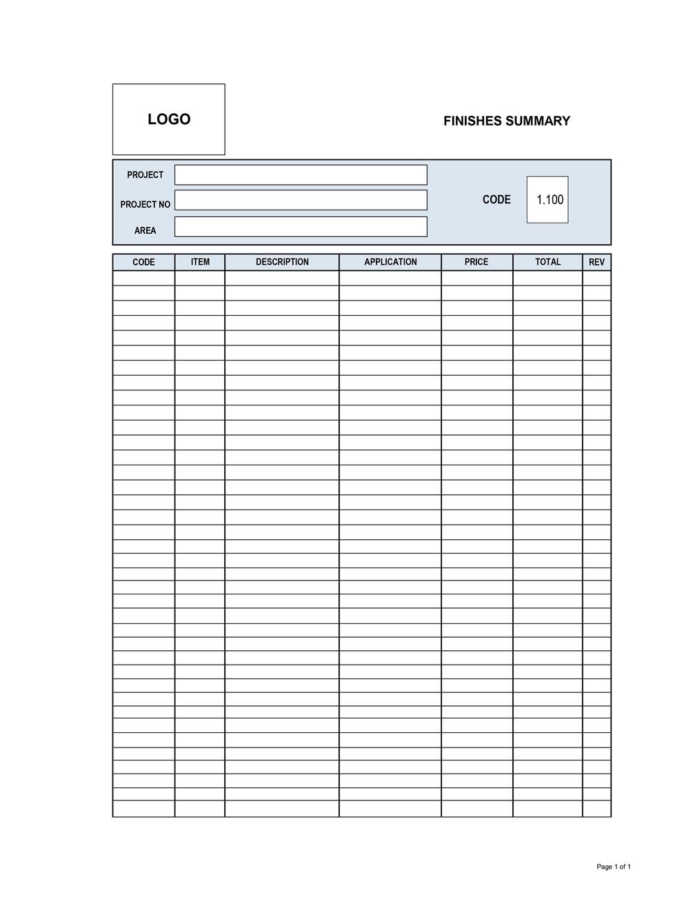 100_ID Finishes Summary